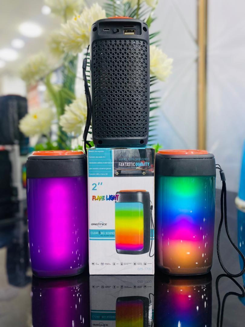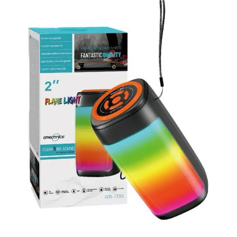 اسپیکر بلوتوثی مدل 1732-gts یک اسپیکر عالی و کوچک و قابل حمل است و دارای 3 حالت رقص نور است و usb و aux را ساپورت میکند اقلام داخل جعبه محصول یک عدد کابل شارژ و دفترچه راهنما میباشد اسپیکرفوق یک صدای شفاف و بیس عالی به شما ارائه میدهد