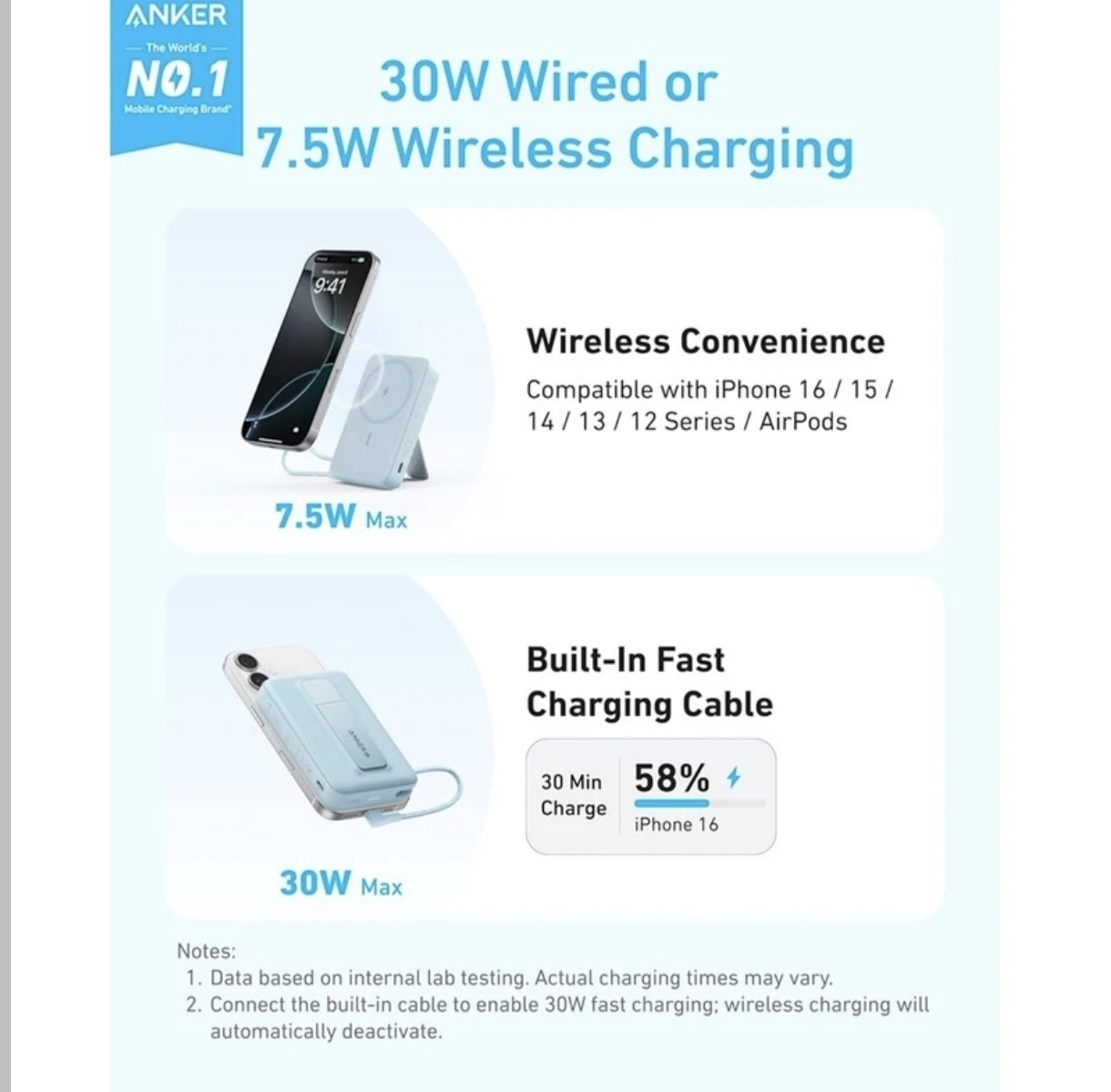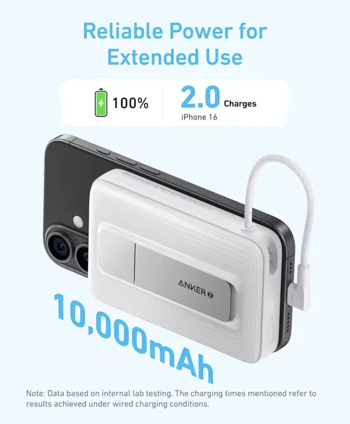 پاوربانک بی سیم مگ سیف انکر مدل Zolo A1685 ظرفیت 10000 میلی آمپر ساعتAnker Zolo Power Bank | Wireless Charging with Flexible Stand